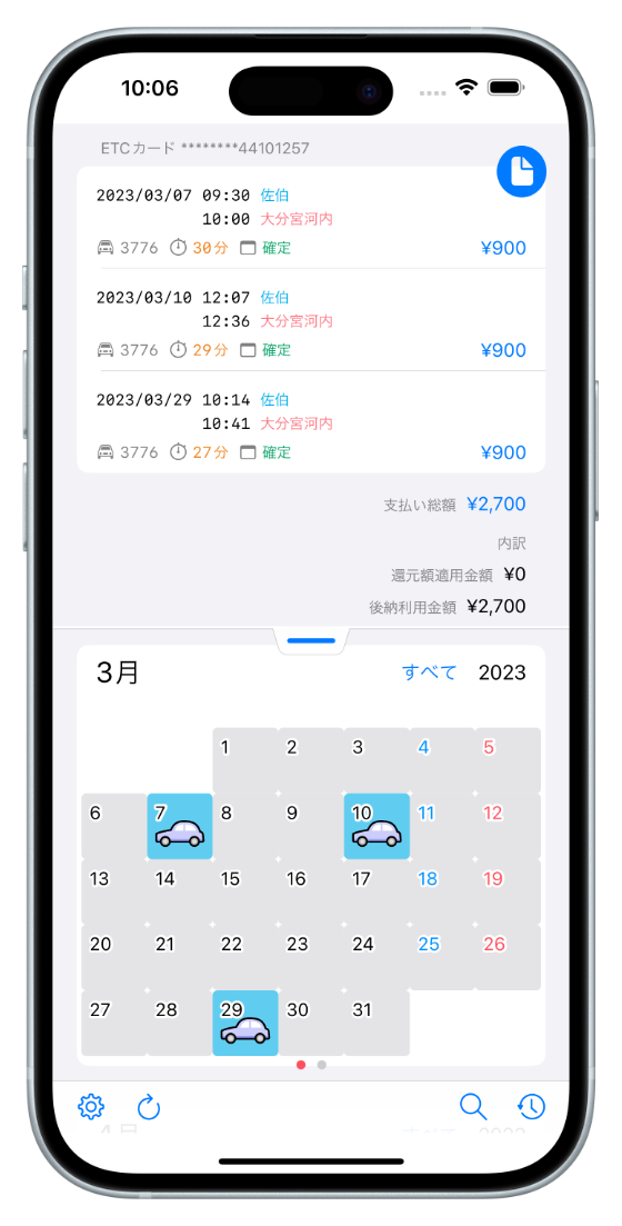 ETCの利用記録を見れるアプリです