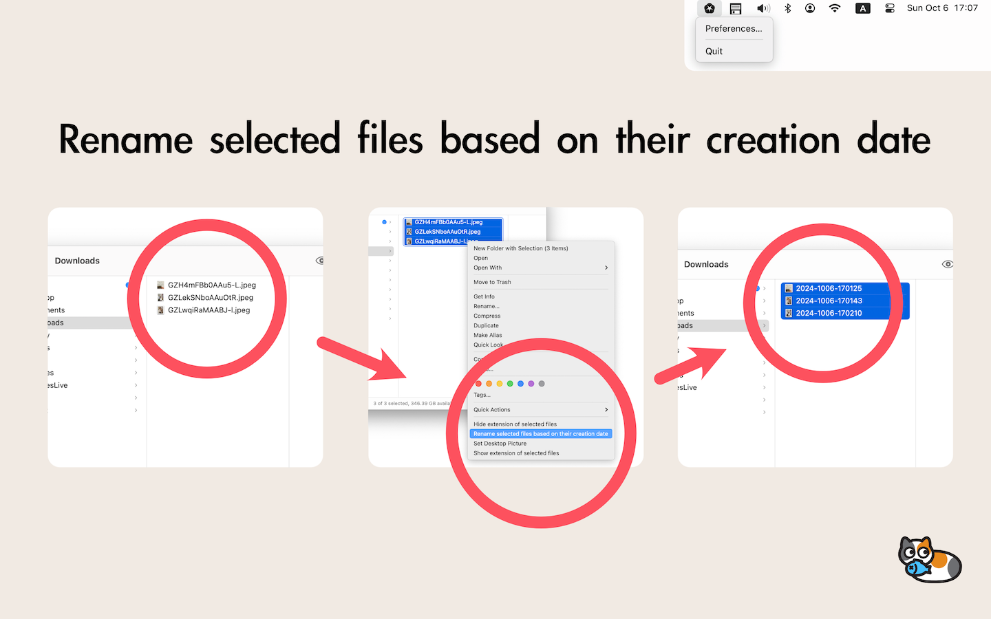 このアプリは画像ファイルの整理に役立つ3つのメニュー項目を Finder に追加します