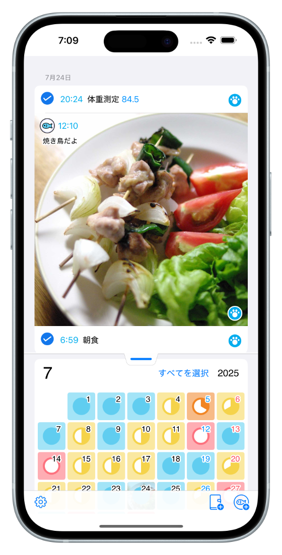 毎日ちゃんと食べてちゃんと暮らしていくお手伝いをするアプリです。ごはん写真や目標の達成具合等を記録できます。
